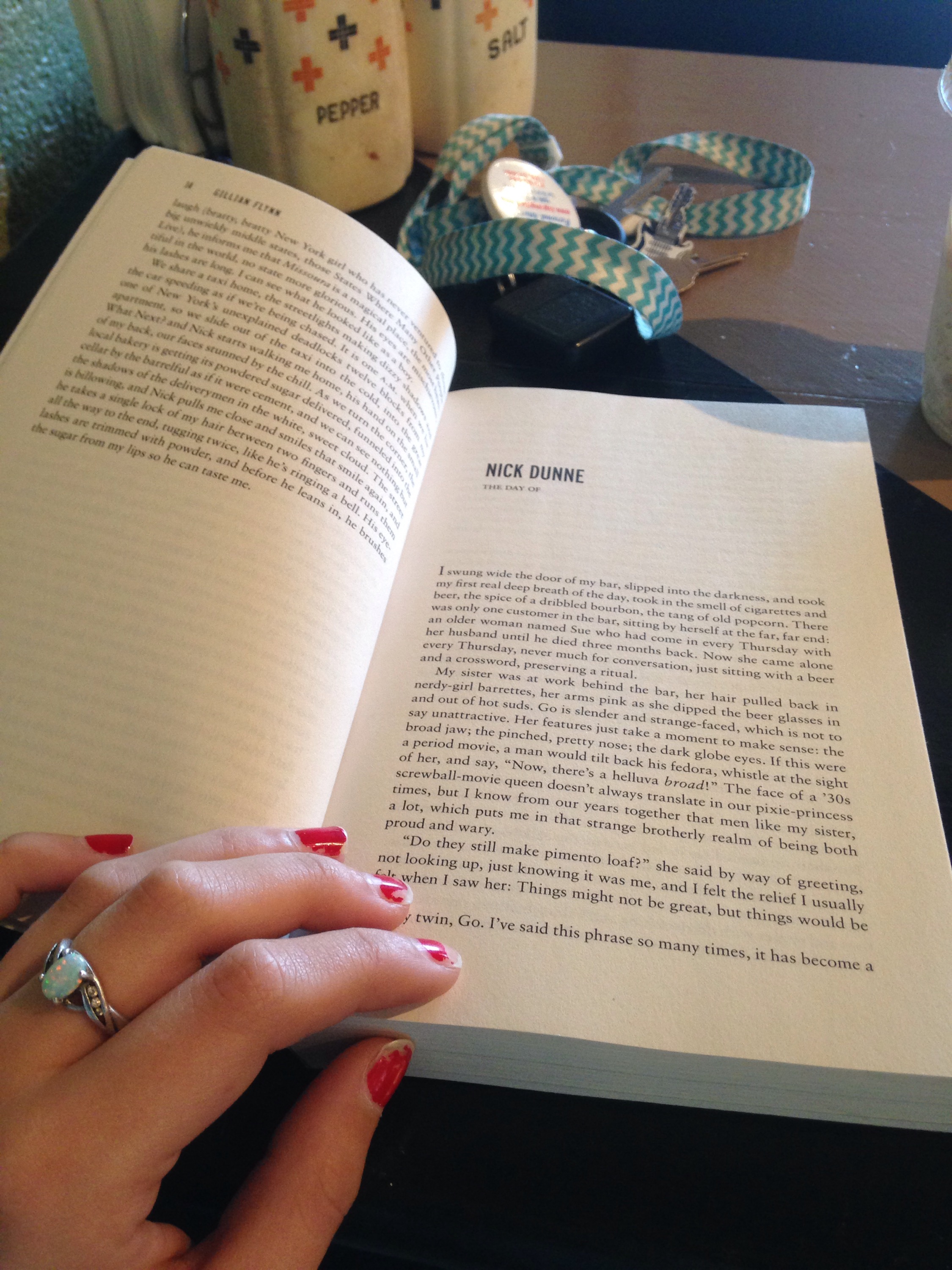 So here I am. Reading a book that was a gift to me from my dear college friend. I’m now reading, Gone Girl by Gillian Flynn. So far it is quite interesting. However, that is coming from only page 15 of 415. So I’d not yet take my word on that.